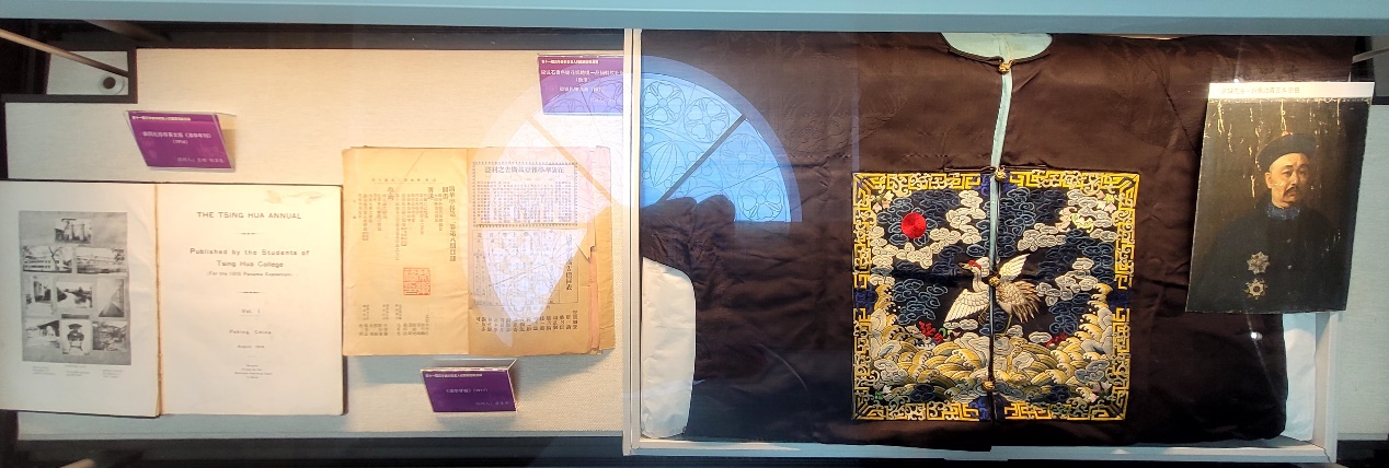 ──晚清外交官暨驻美公使、促成庚子赔款留学计划实施以创建清华学堂的重要人物——梁诚的晚清官服与肖像油画(照片)(梁达民捐赠)、1914年袁同礼珍存的英文版《清华年刊》(袁刚、刘卫东捐赠)、1917年《清华学报》(蔡乐苏捐赠);
